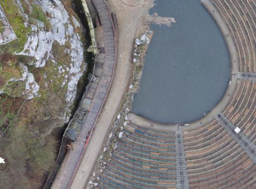 Als Planungsgrundlage für Umbau und Felssicherungsmaßnahmen galt es mit der UAV-Vermessung eine aktuelle, exakte und auch in den Felsbereichen aussagekräftige Bestandsunterlage zu erstellen.